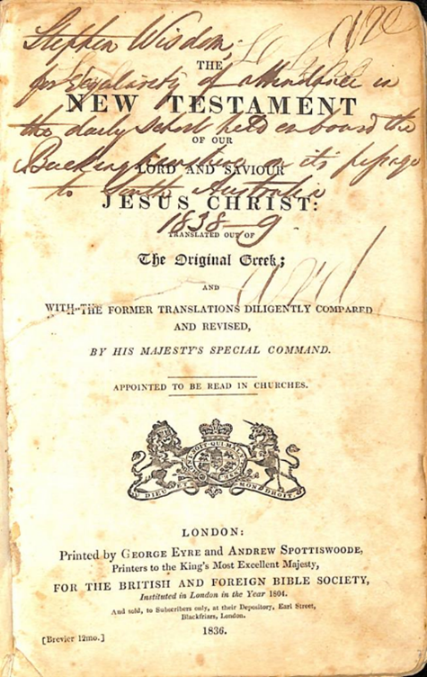 “Steven Wisdom. For regularity of attendance in the daily school held on board the Buckinghamshire on its voyage to South Australia 1838 – 39″