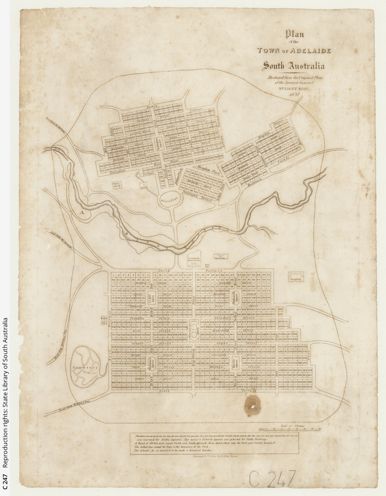 You will find the original purchasers of the town acre at this site: https://coombe.id.au/1840s_South_Australia/1837_Adelaide_Map_Original_Purchasers.htm